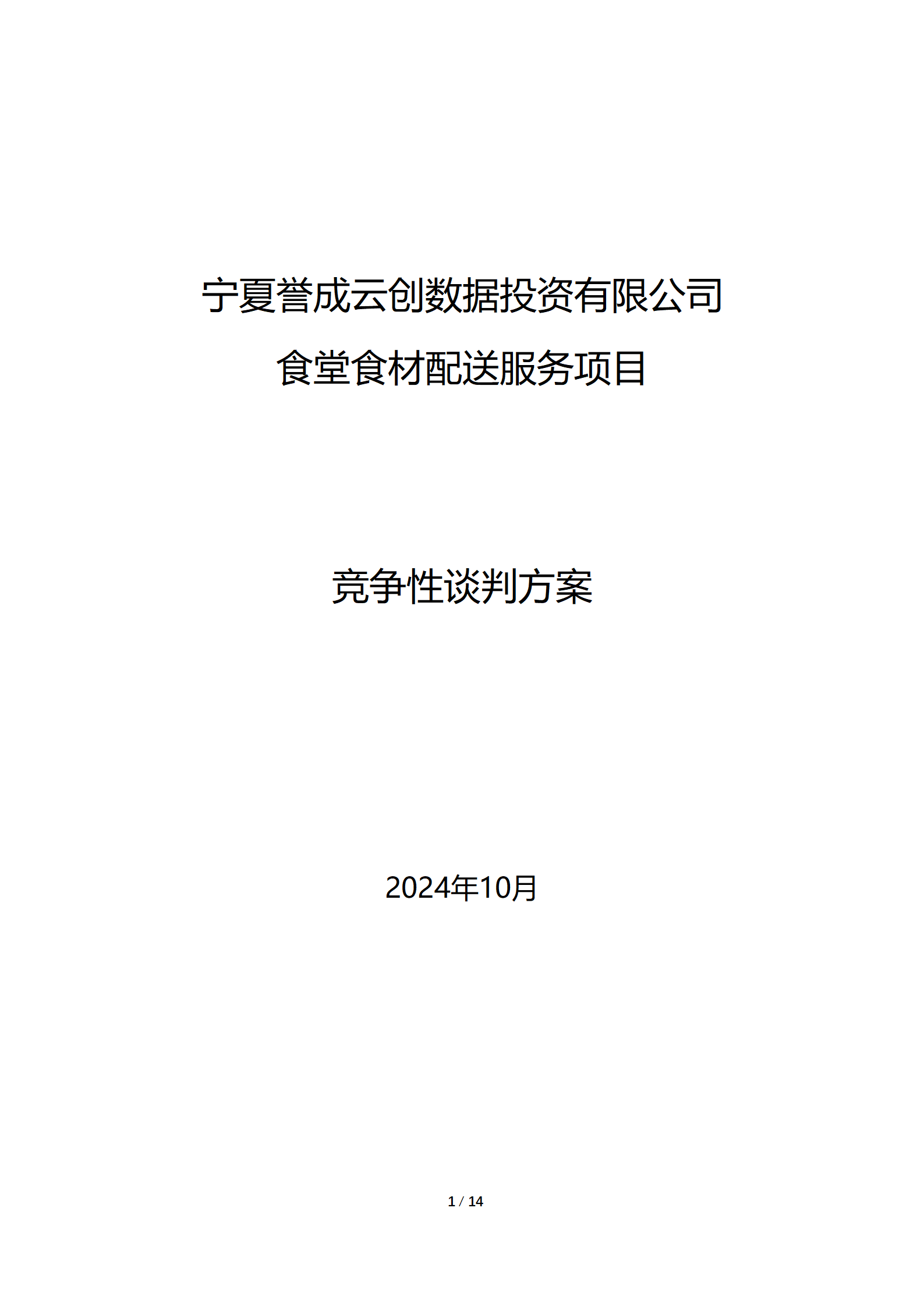 寧夏譽成云創(chuàng)數(shù)據(jù)投資有限公司現(xiàn)采購食堂食材配送服務,詳細采購信息參見附件詢價文件。