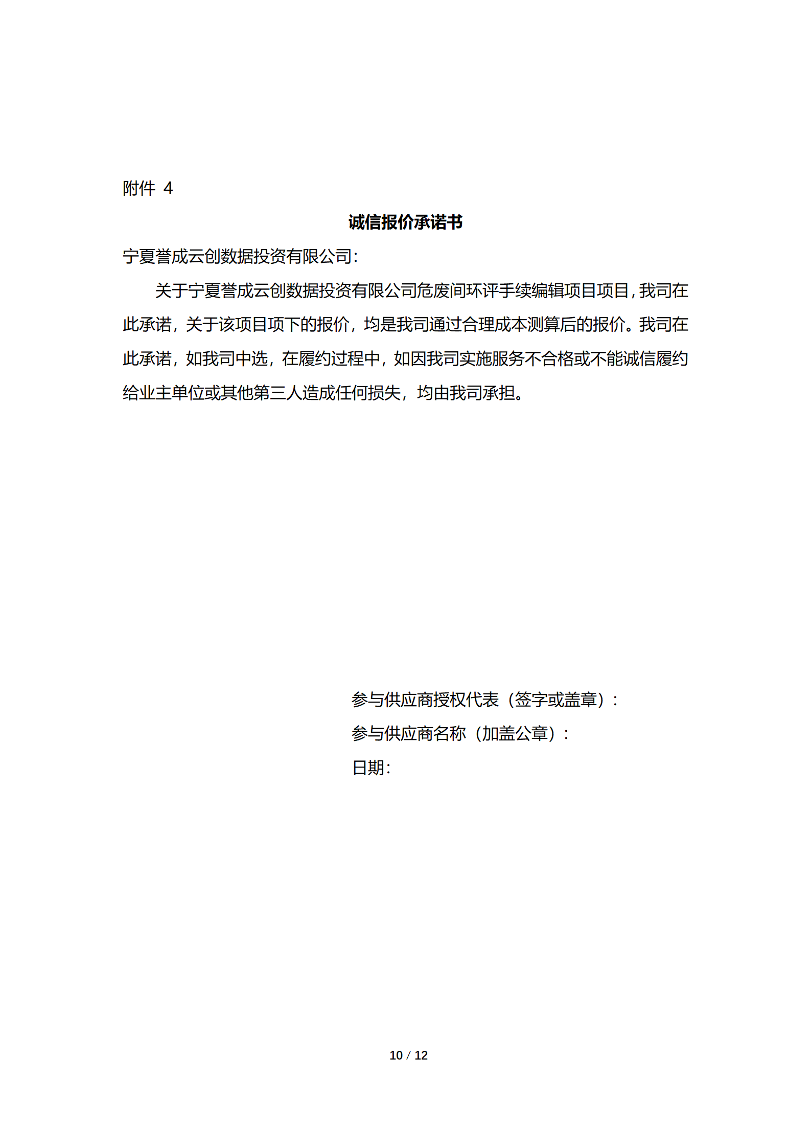 寧夏譽(yù)成云創(chuàng)數(shù)據(jù)投資有限公司現(xiàn)采購公司危廢間環(huán)評手續(xù)編輯項目,詳細(xì)采購信息參見附件詢價文件。