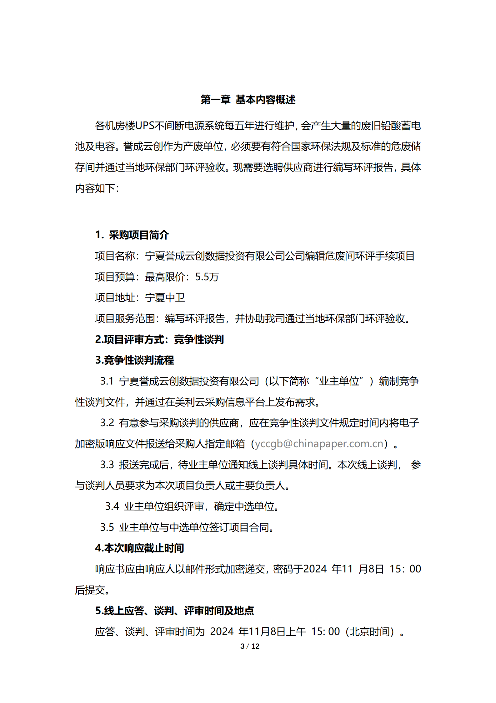 采購信息公告 | 寧夏譽(yù)成云創(chuàng)數(shù)據(jù)投資有限公司危廢間環(huán)評手續(xù)編輯項目公告
